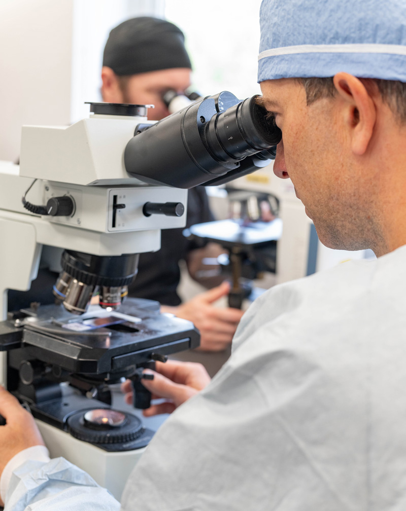 When our dermatology providers suspect certain conditions, they will remove a section of your skin for further examination. The tissue is then sent to a dermatopathologist who will examine it under a microscope in a lab environment and provide your dermatologist with a written report, also called a biopsy report.